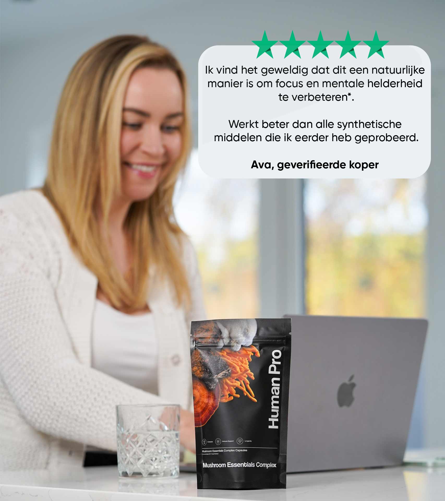 Human Pro voert uitgebreide analyses uit op actieve stoffen zoals beta-glucanen en triterpenen en deelt deze gegevens transparant. Elke verbinding is direct afkomstig van paddenstoelen, niet van vergelijkbare stoffen uit planten.